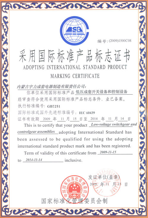 采用國際標(biāo)準(zhǔn)產(chǎn)品標(biāo)志證書