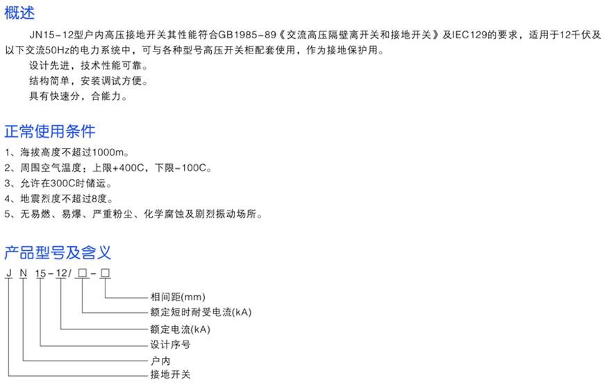 JN15-12戶內(nèi)高壓接地開關(guān)